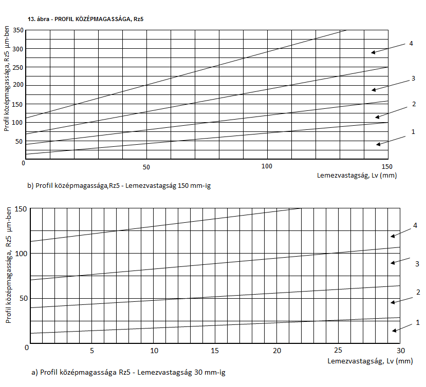 A termikusan vágott anyagok vágott felületeinek minőségét az alábbi jellemző értékek ismertetik: